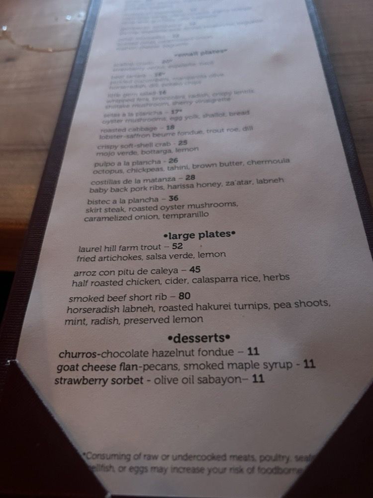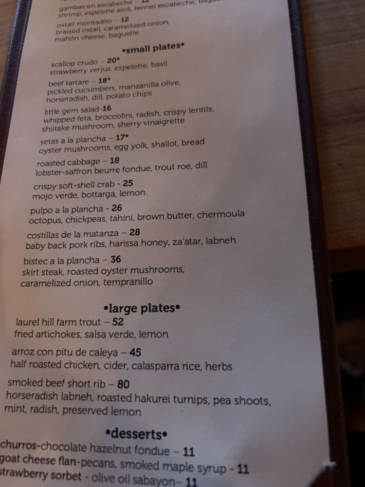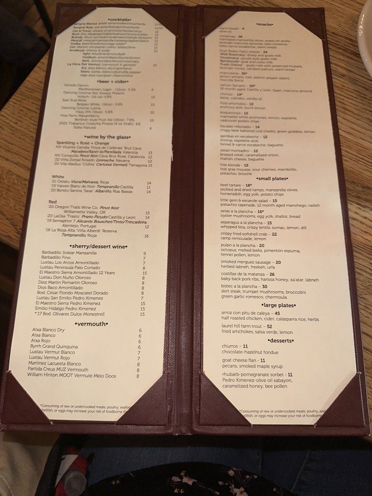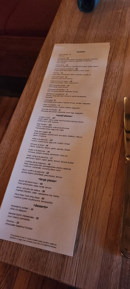 Morcilla in Pittsburgh, PA offers a Spanish dining experience with a plethora of options for all types of diners. From traditional tapas like the Oxtail Montadito and Mussels en Escabeche to larger plates like the Half Roasted Chicken with Rice or the Bistec a la Plancha, there is something for everyone to enjoy. Customers rave about the cozy ambiance, attentive service, and flavorful dishes. Standout items include the Duck Confit, Beef Tartar, and the setas a la plancha. The menu is a perfect blend of traditional Spanish flavors and innovative twists, making it a must-visit spot for food enthusiasts looking for a unique dining experience. Whether you're looking for a date night spot or a lively night out with friends, Morcilla delivers on both quality and ambiance.